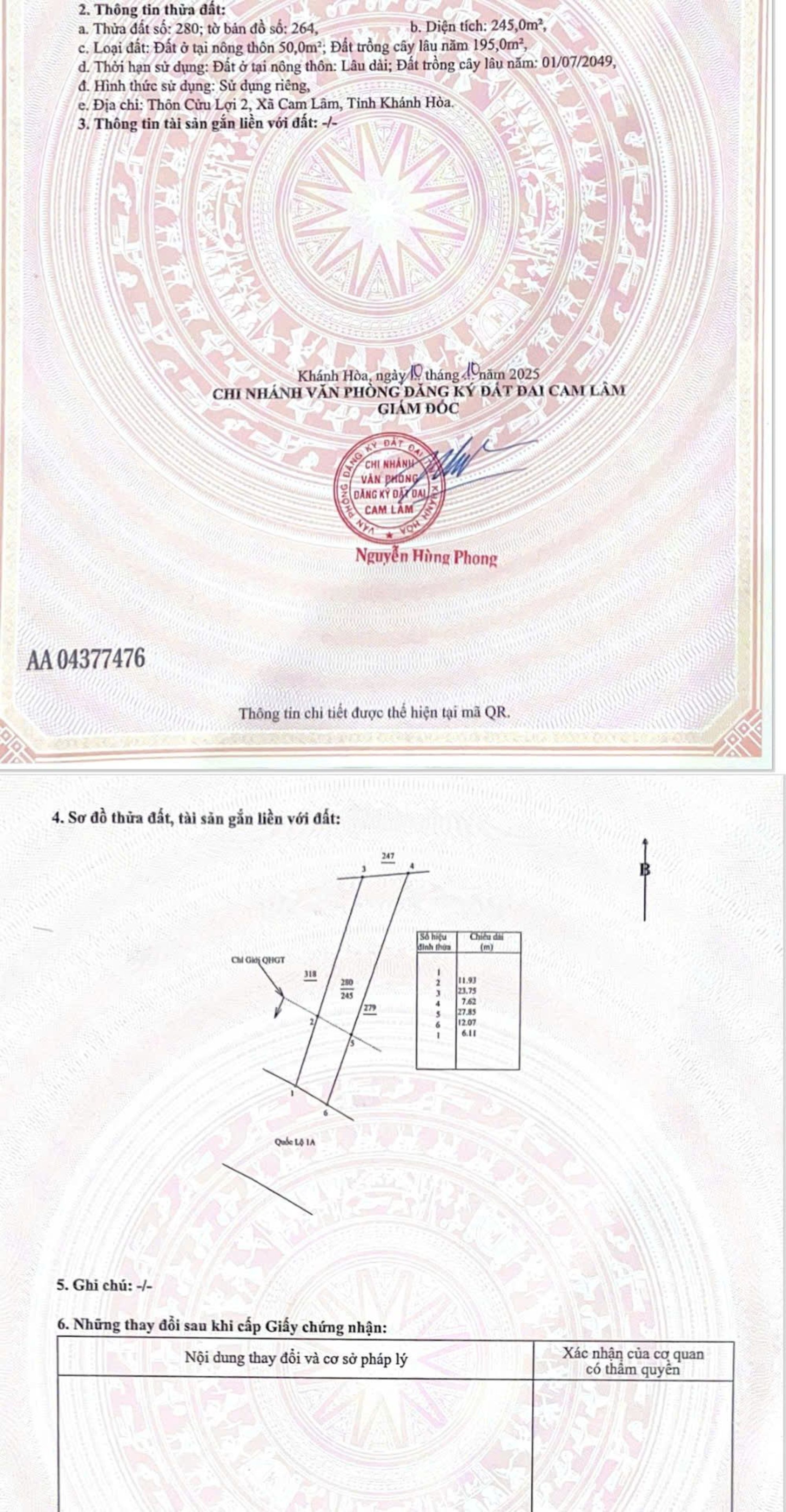 Diện tích: 245 m2 - 50 thổ cư