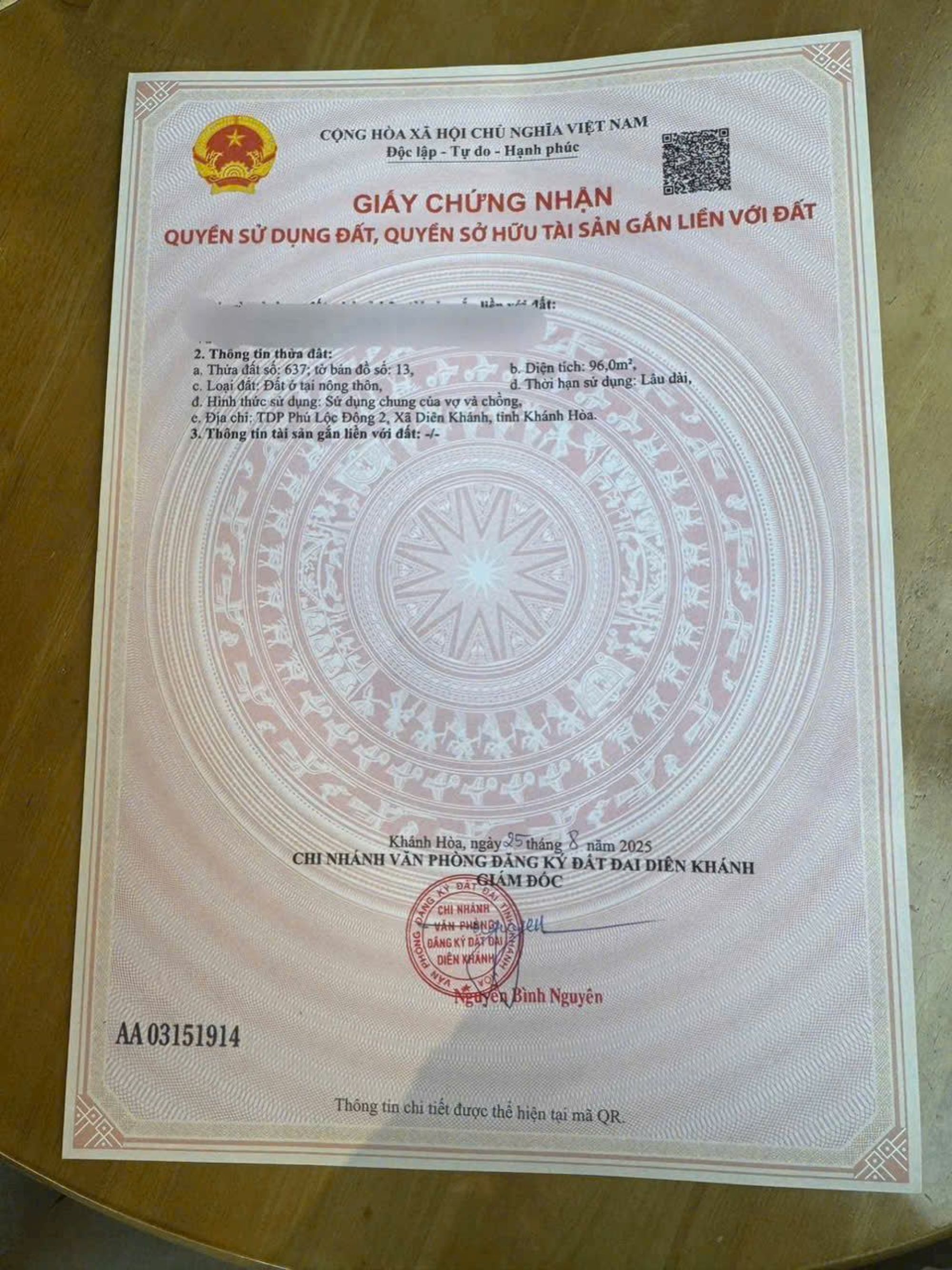 Bán lô góc khu TĐC Bầu Gáo TT Diên Khánh