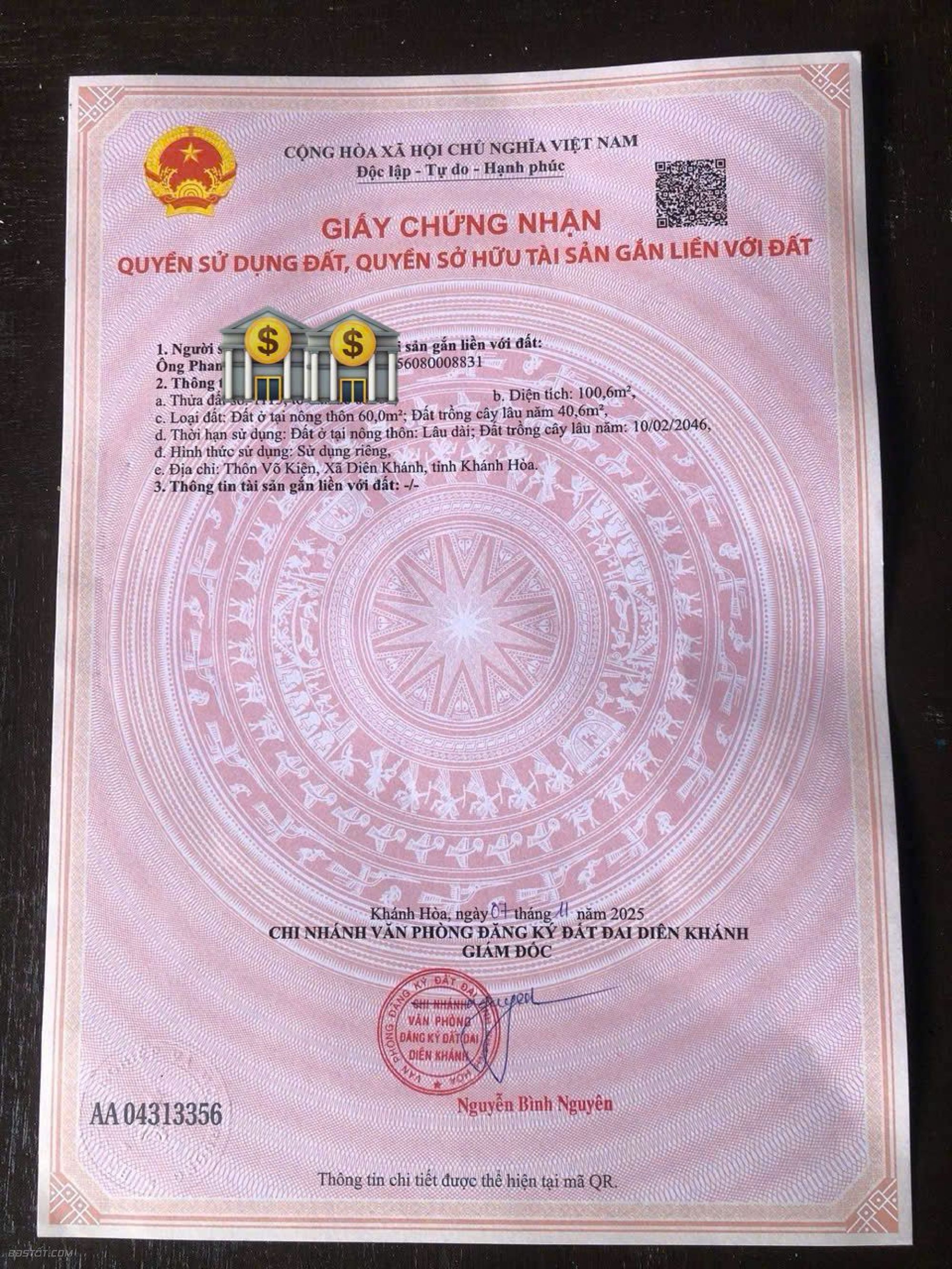 - Diện tích : 100,6m ngang 6m có 60m thổ cư Khu dân cư hiện hữu, an ninh, xây dựng tự do