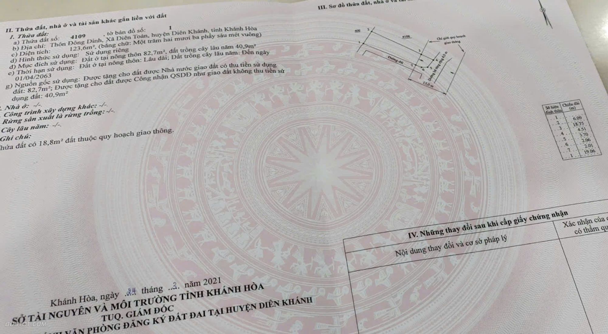 Diện tích 123.6m2 quy hoạch 18.8m2 còn 104.8m2