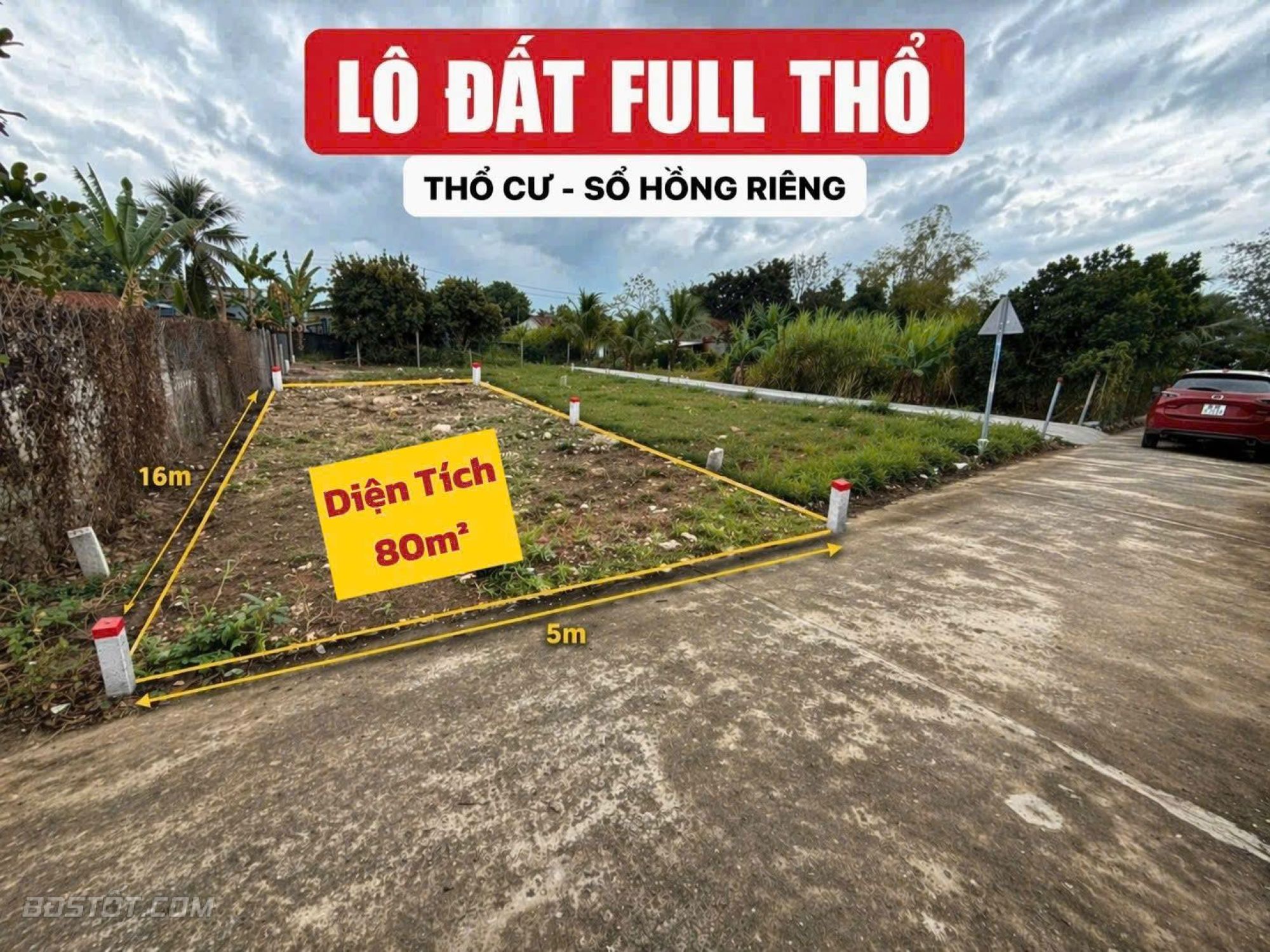 Diện tích: 80m - ngang 5m, full thổ cư, Hướng Tây