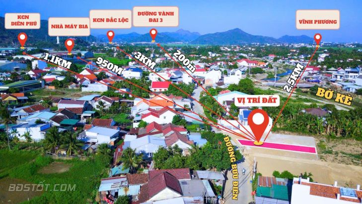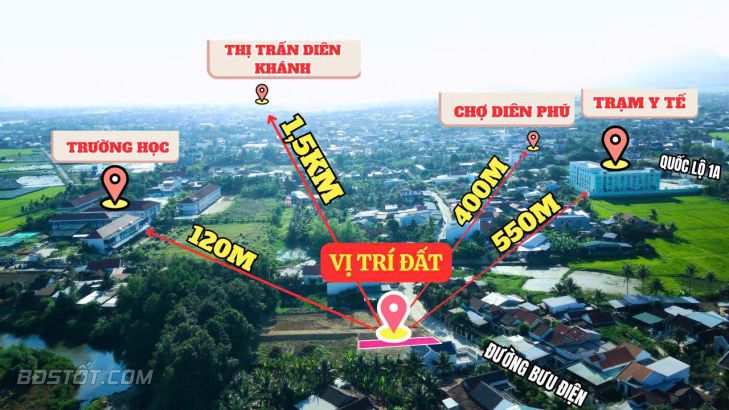 Bán kính 200m trường, chợ, uỷ ban, khu công nghiệp
