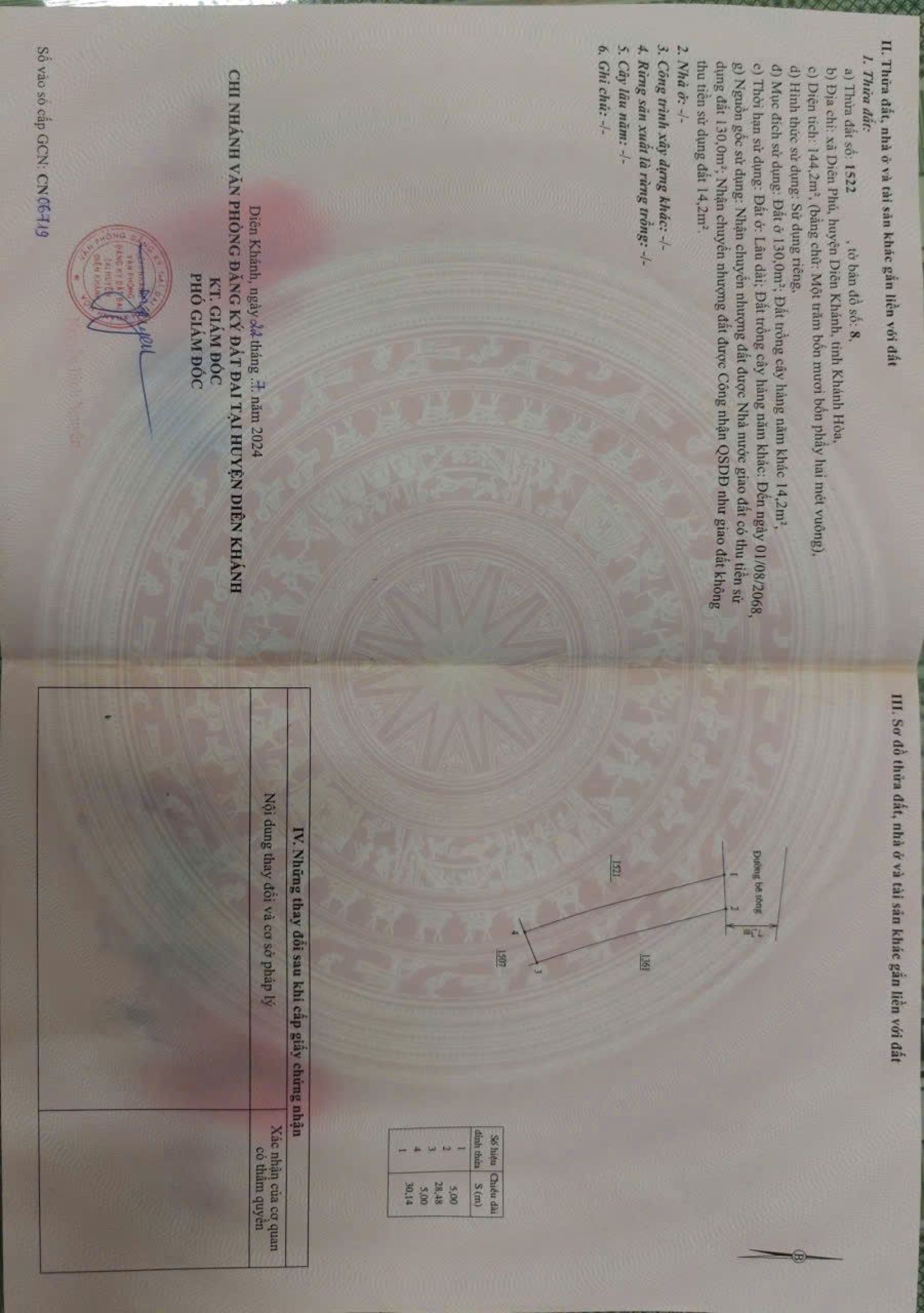 Dt:144m - ngang 5m, có 130m thổ