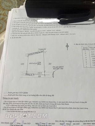 CẦN TIỀN GẤP nên HẠ GIÁ LÔ Đất DIÊN SƠN 288m chỉ CÒN 1tỷ7, cách đường NHÀ VUÔNG chỉ 200m.