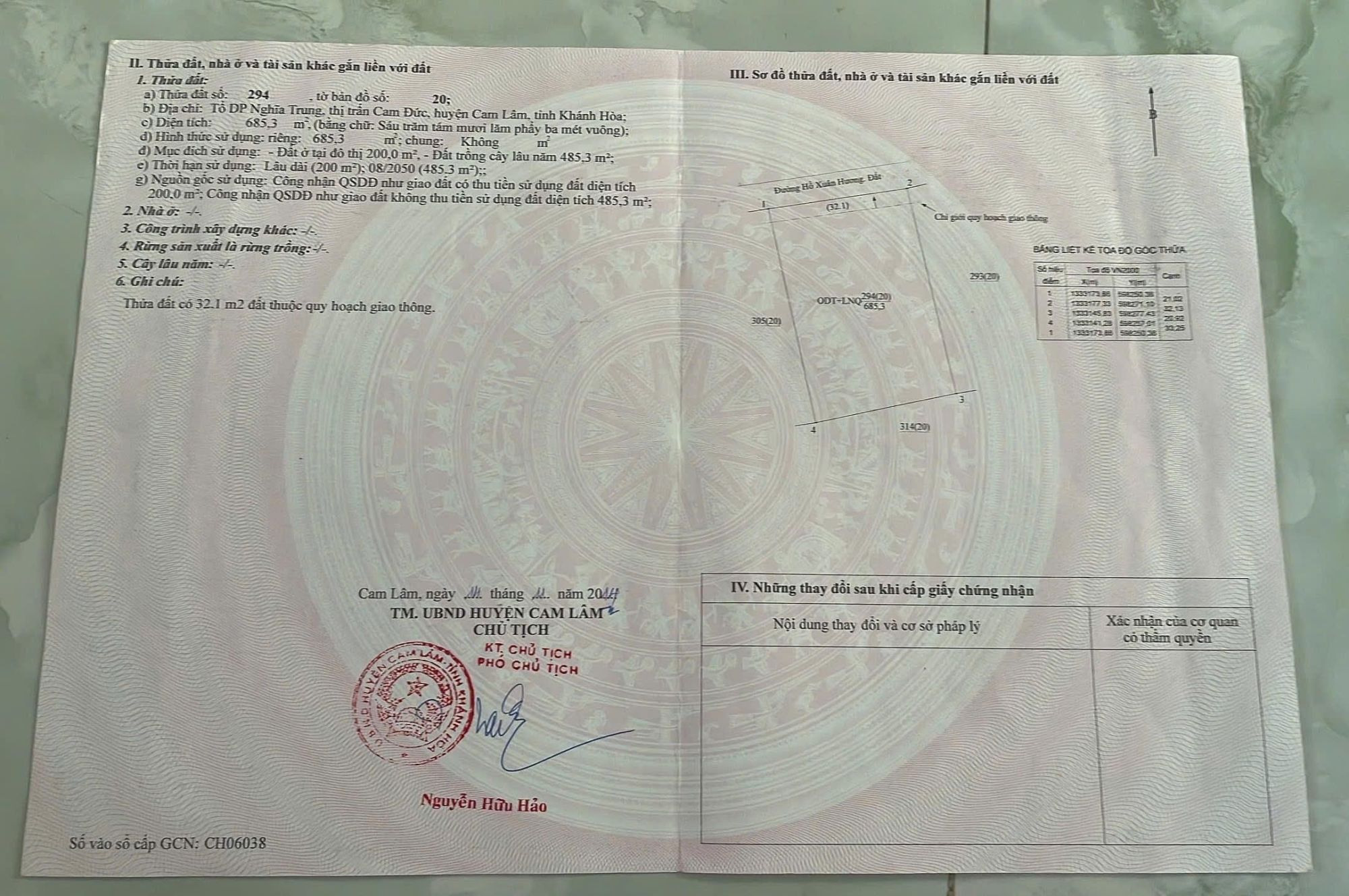 Diện tích: 685,3m2 (21 x 32) 200m2 đất ở đô thị