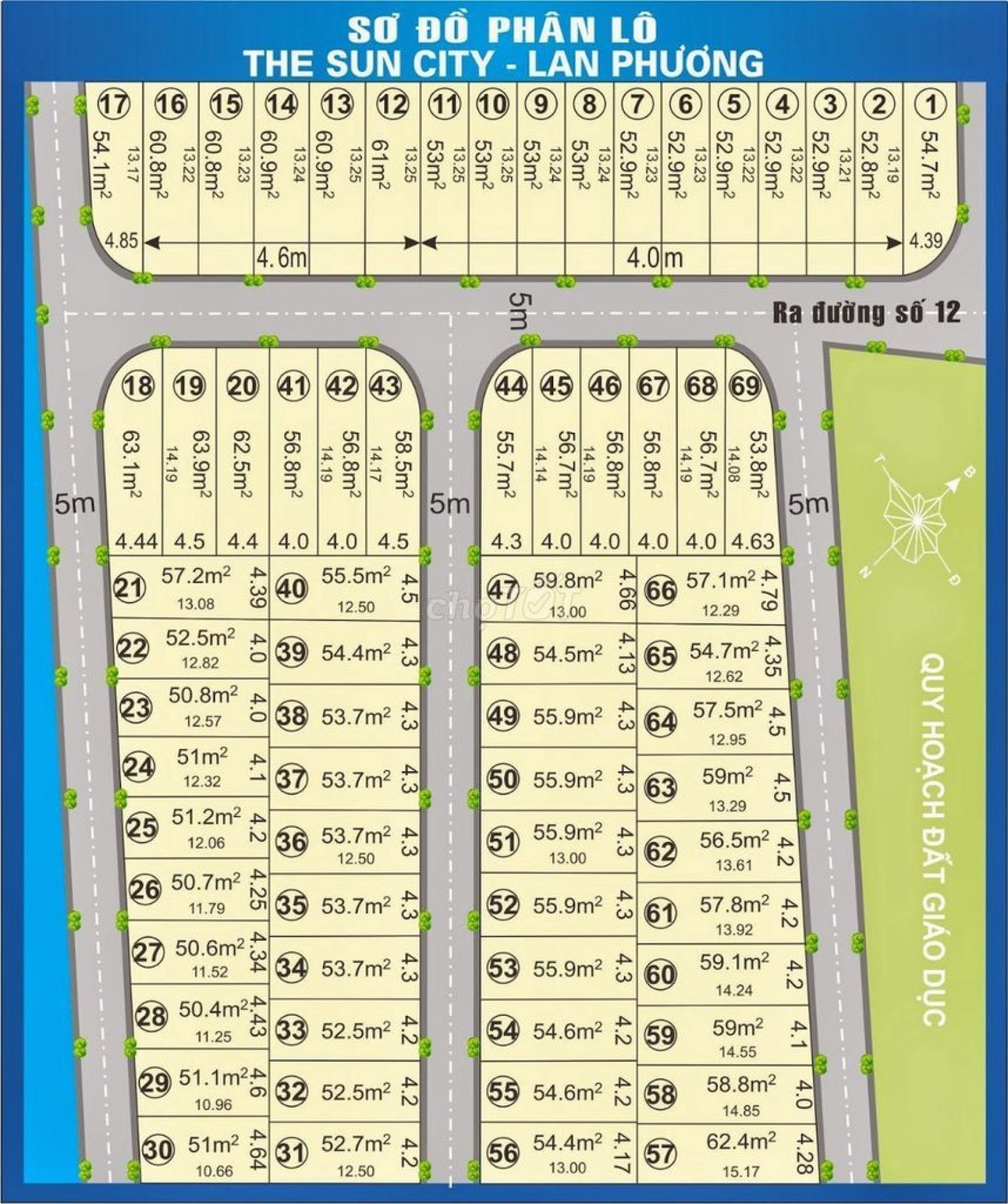 Diện tích : 4,3 x 12,5m sổ cn 53,7m2