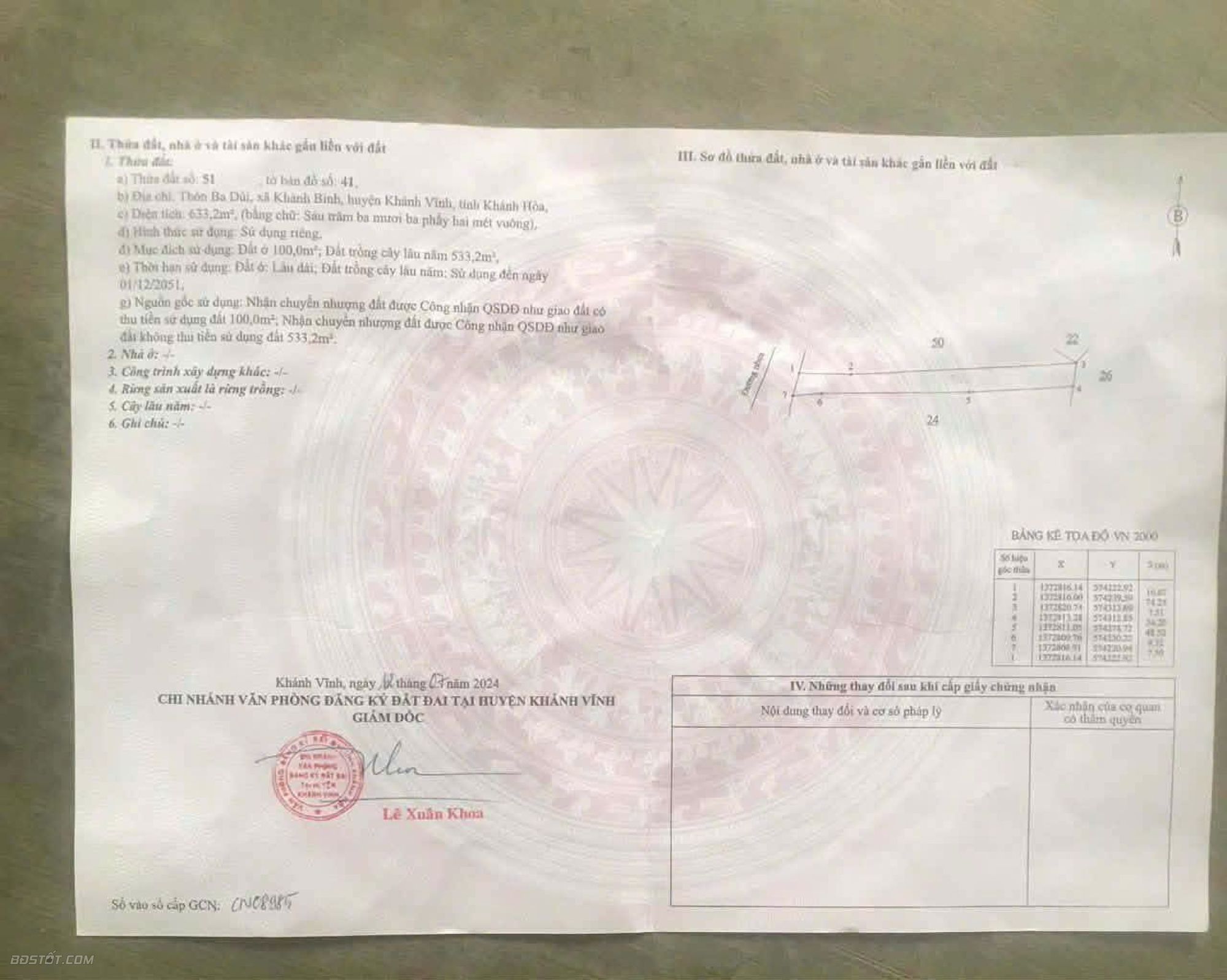 - Diện tích: 633m2 ( 100m2 thổ cư )