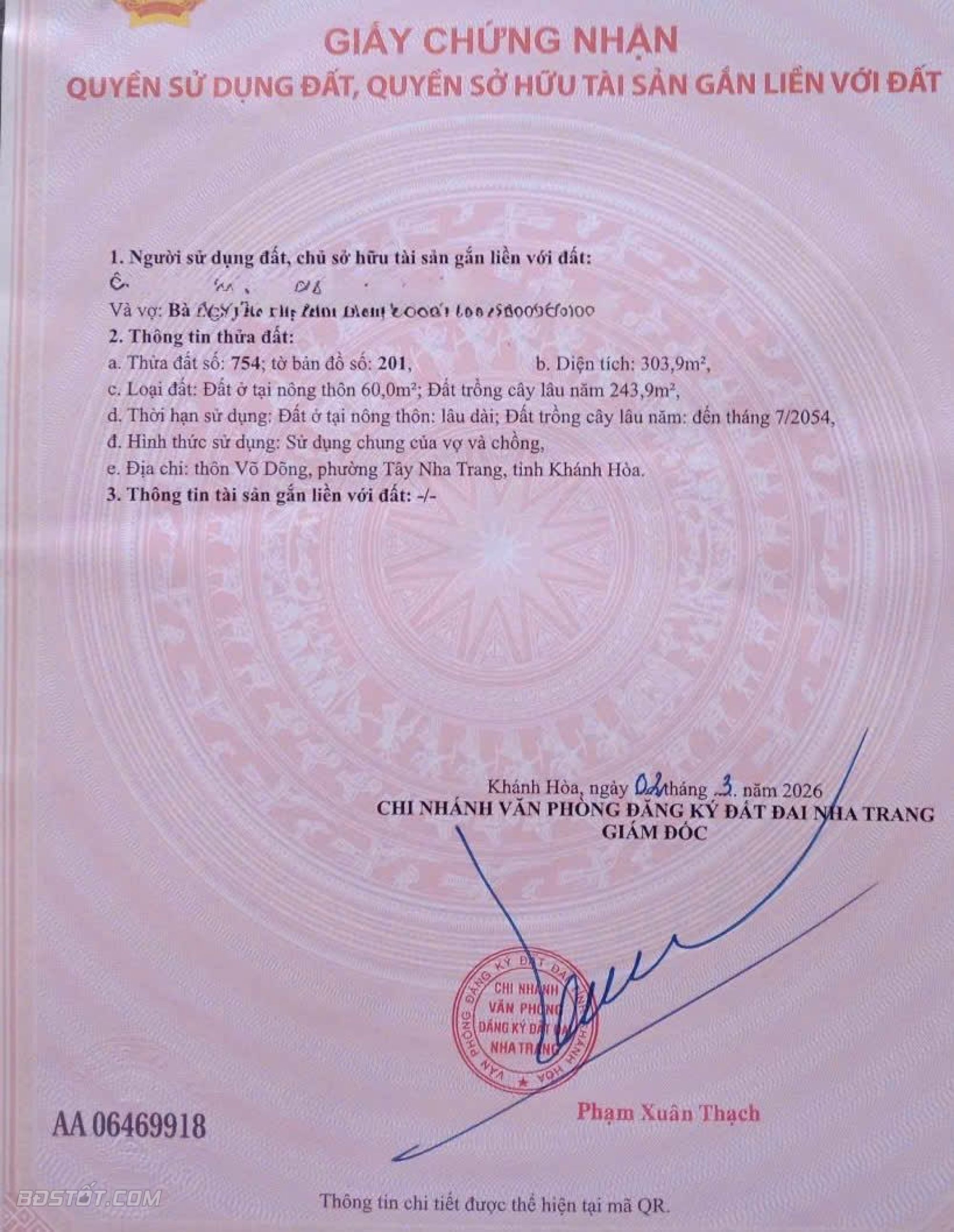 -Diện tích: 303.9m²,Có 60m² đất ở (ONT)