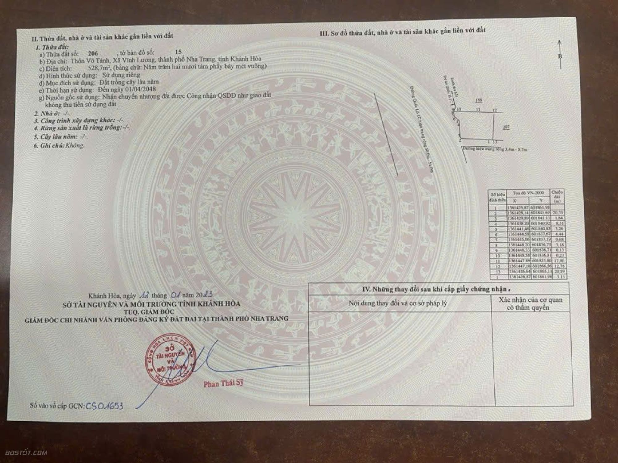 Diện tích sổ: 528,7m² (đã lên full thổ cư).