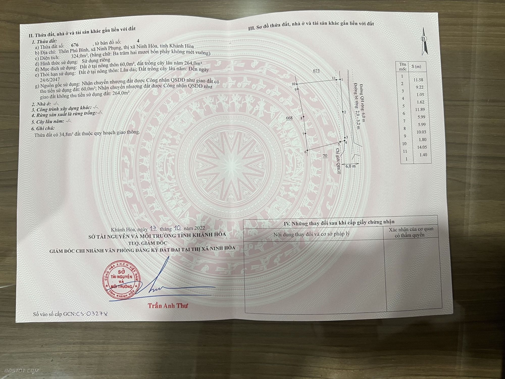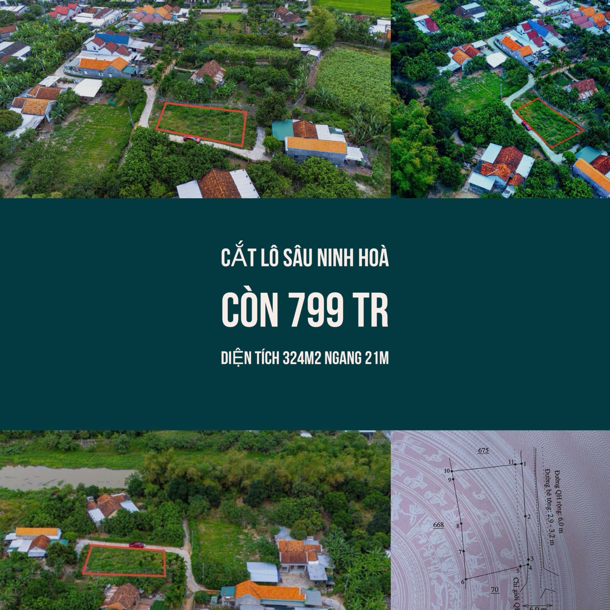 Diện tích 324m2 (Có 60m2 thổ cư ) Ngang 21m Hướng Đông