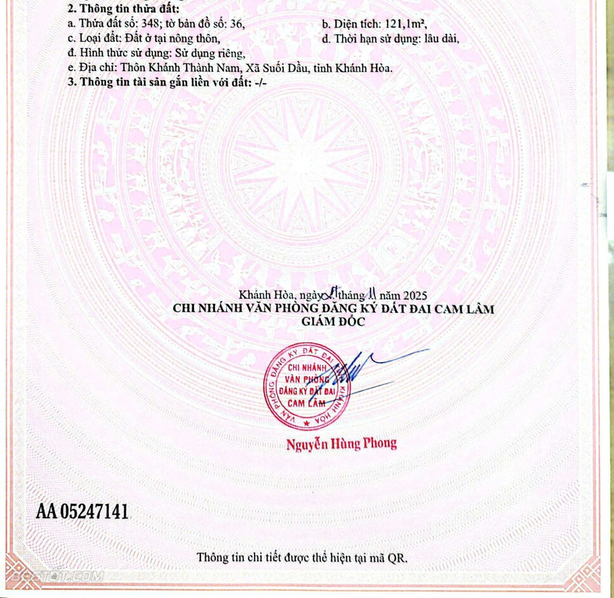 🌹#6xxtr Full thổ cư Tại khánh thành nam, Suối Cát ( nay là xã suối dầu, khánh hoà)