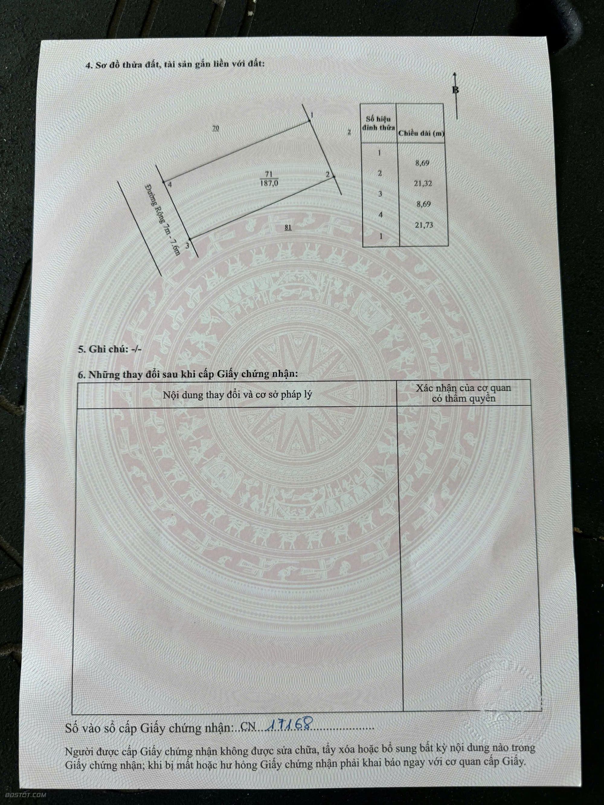 💥Diện tích: 187m2 full thổ cư ( ngang 8,69 mét )
