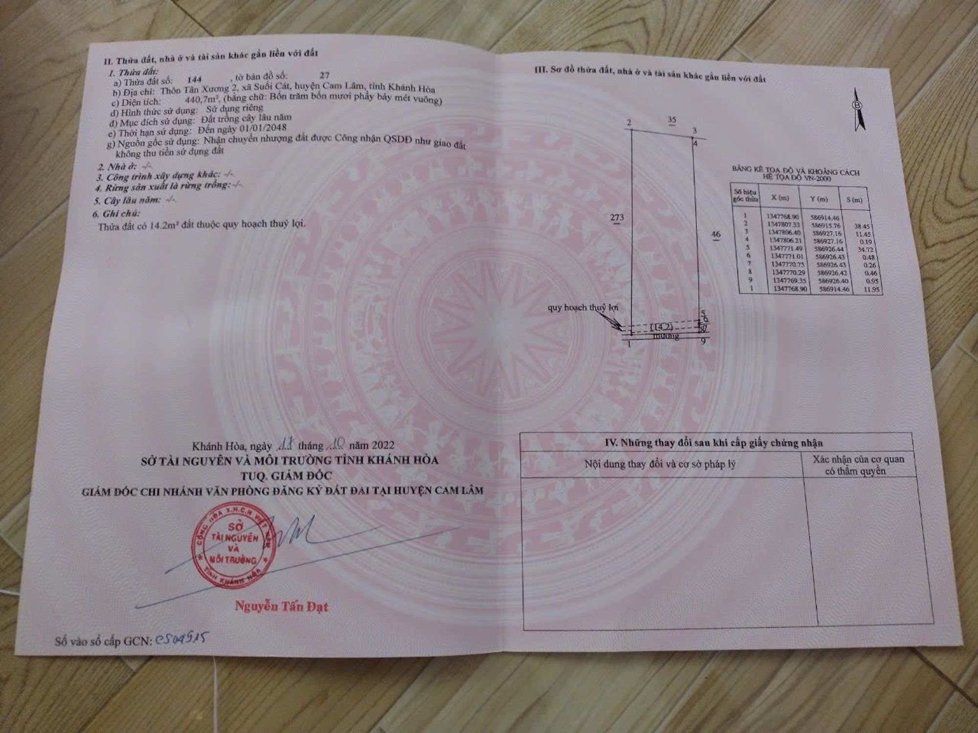 Diện tích: 3554,9m2 (có 200m thổ cư)