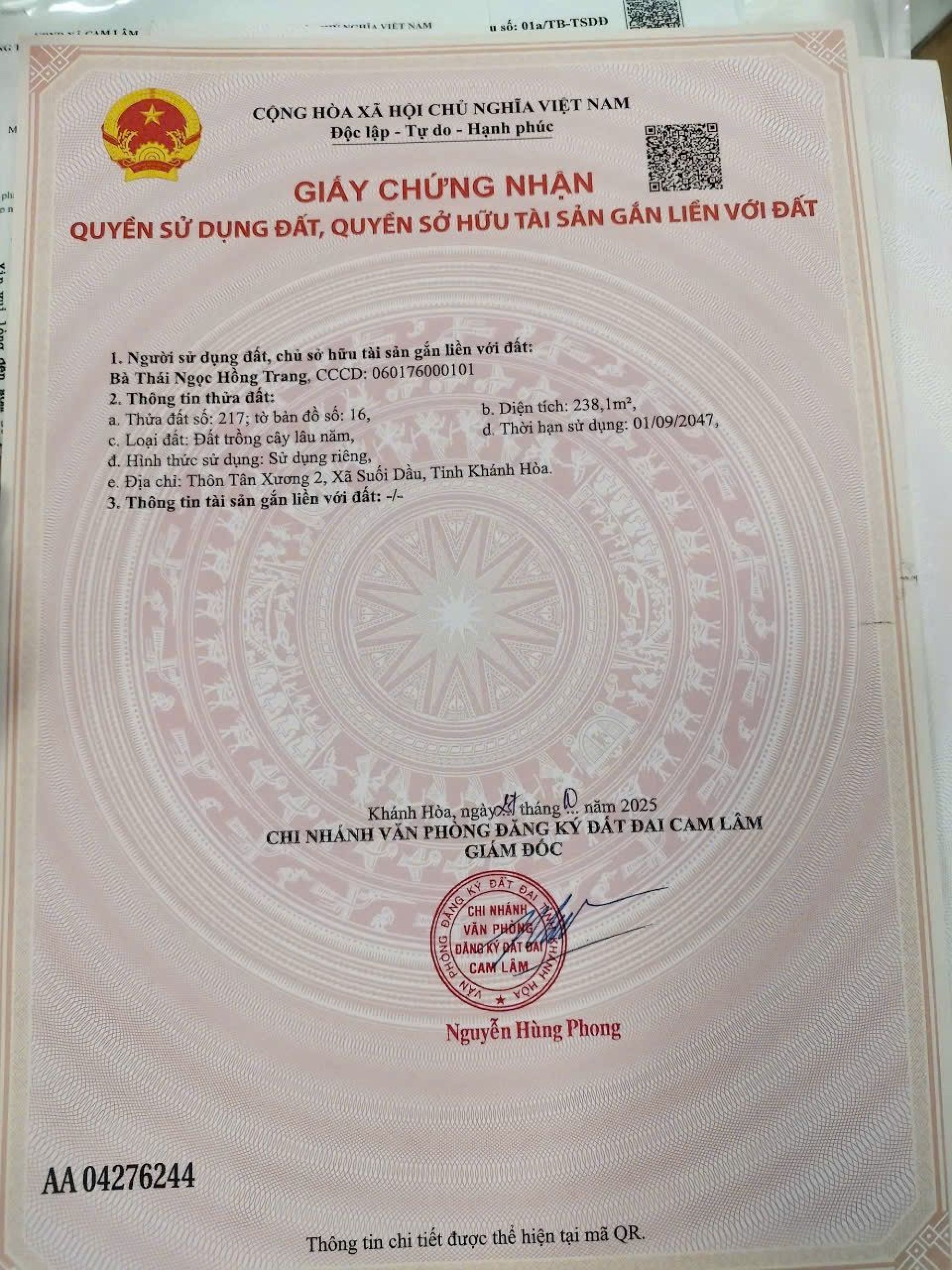 Giấy tờ pháp lý:
