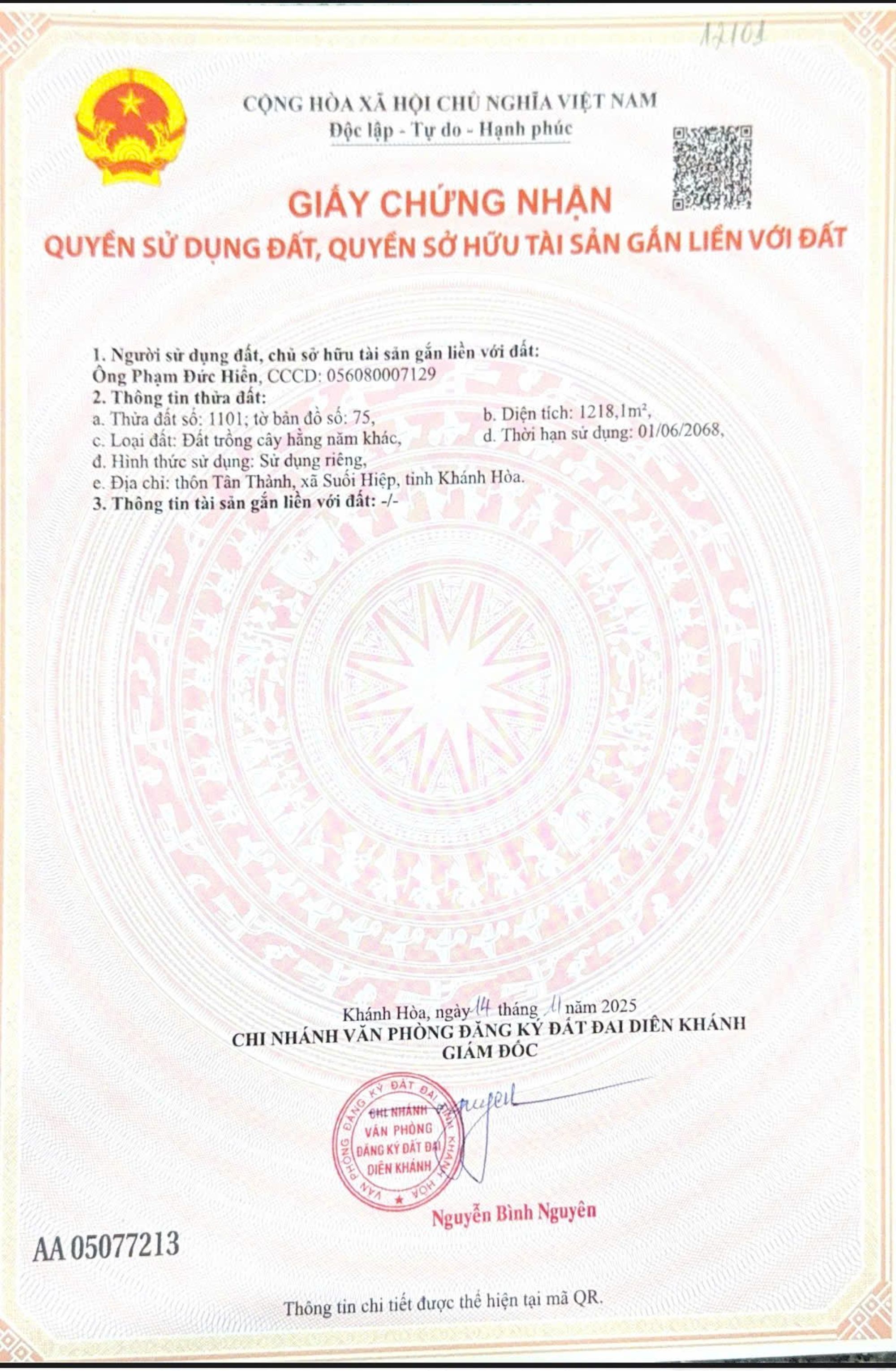 🏡 BÁN 1.218m² ĐẤT THỔ CƯ – SUỐI HIỆP, DIÊN KHÁNH