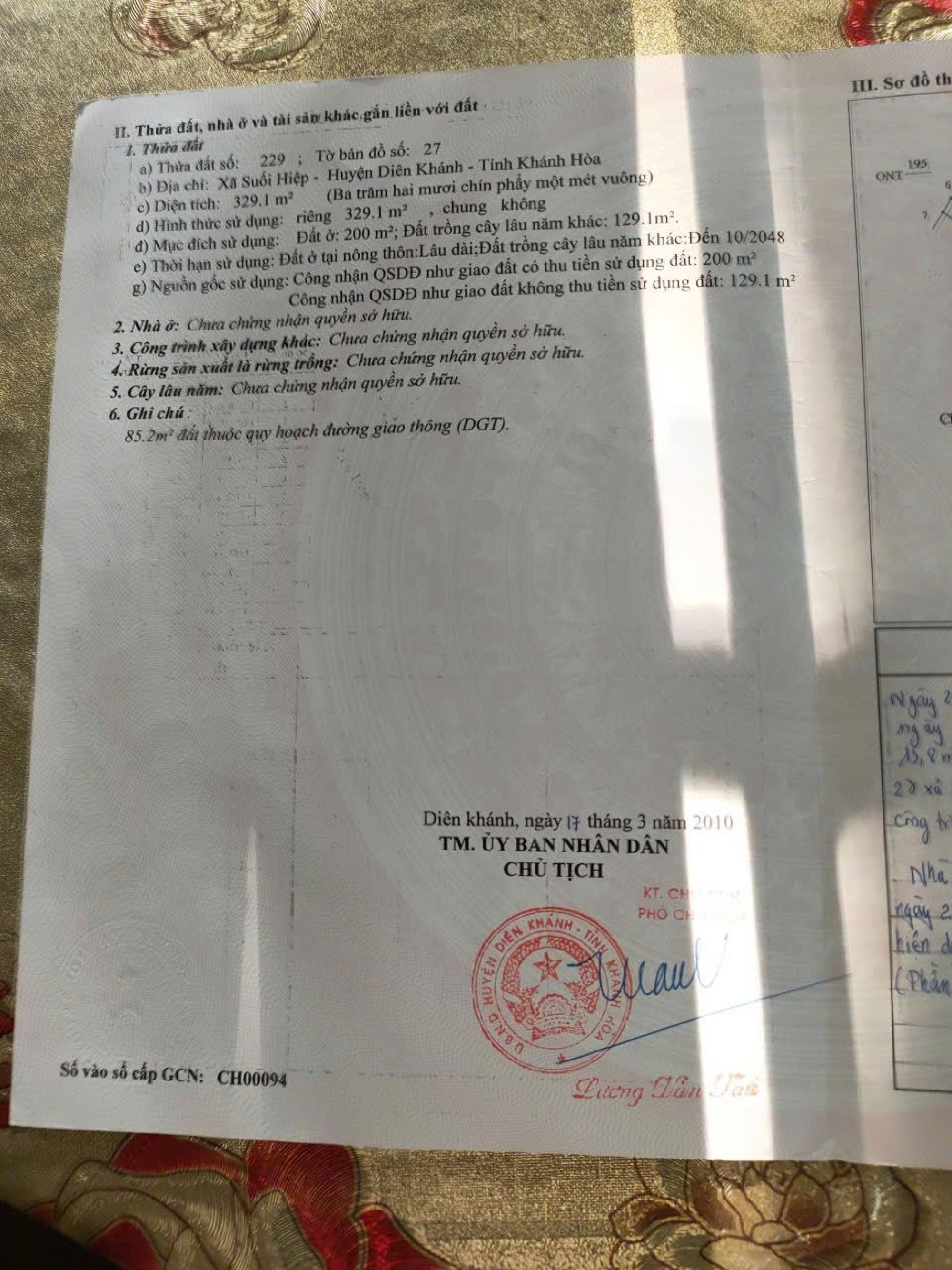 Diện tích: 329,1m2 (200m2 thổ cư)