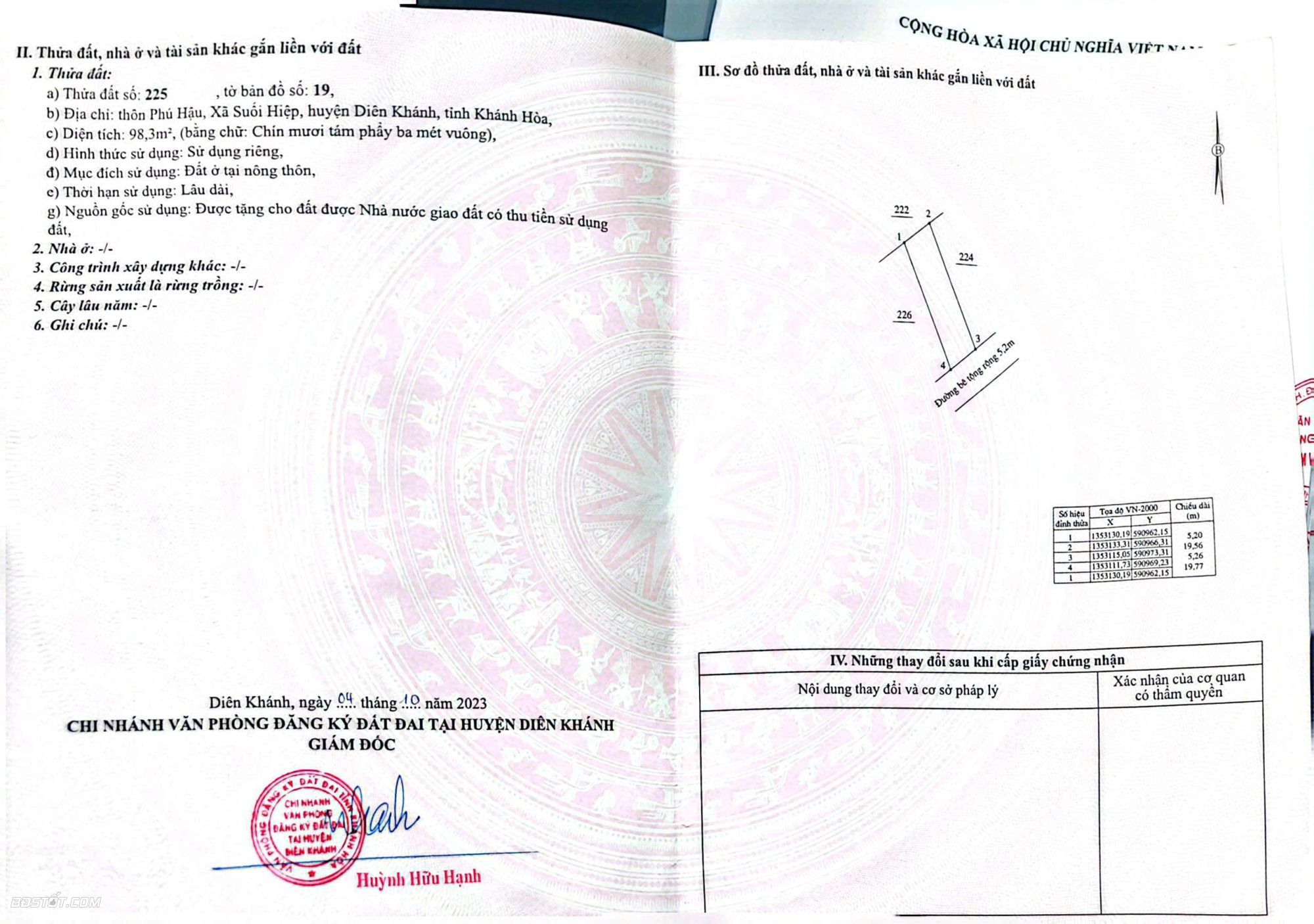 - DT: 98m² thổ cư toàn bộ, đường hiện trạng bê tông 5,5m