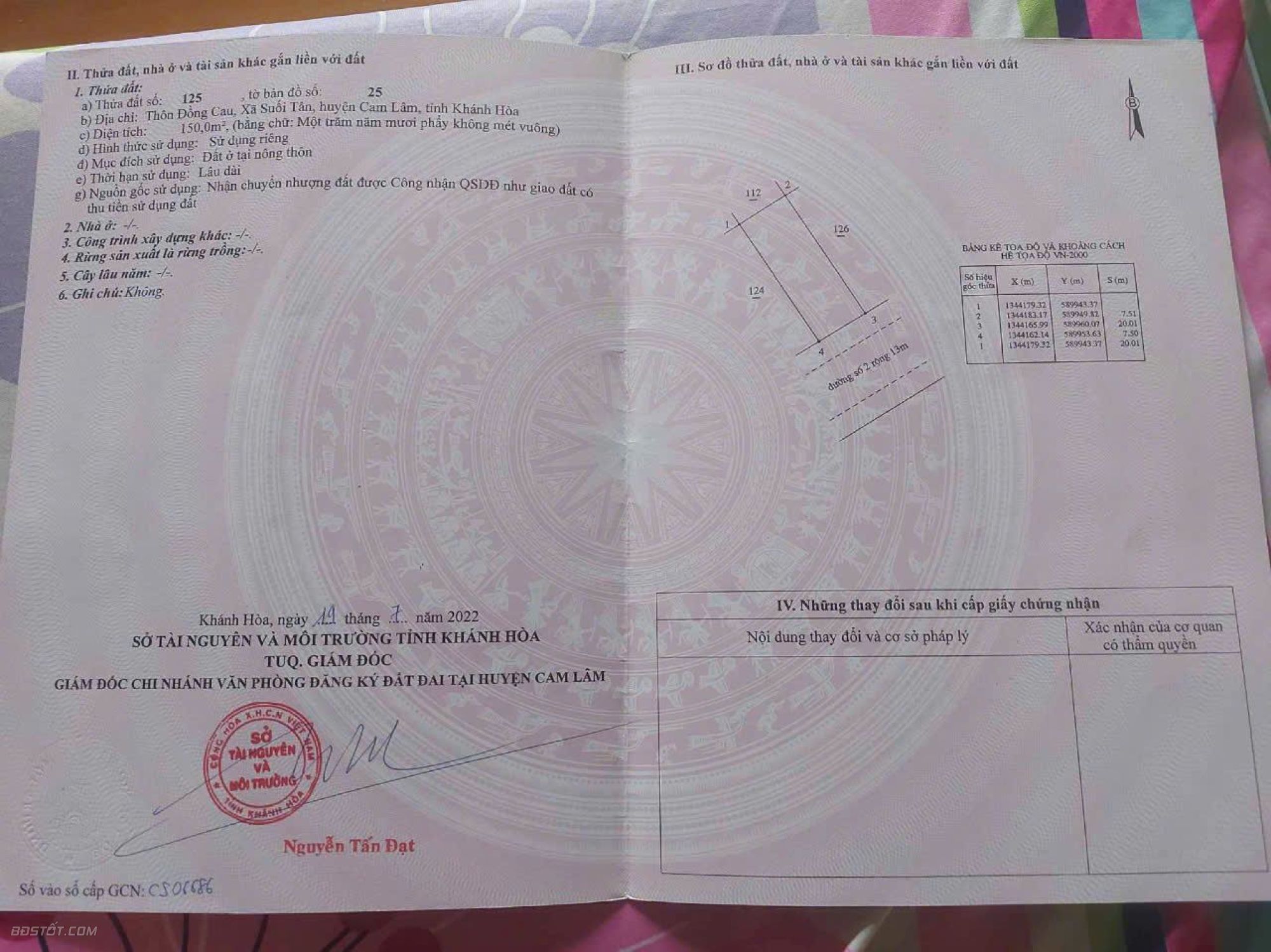 Diện tích: 150m2 (full thổ cư)