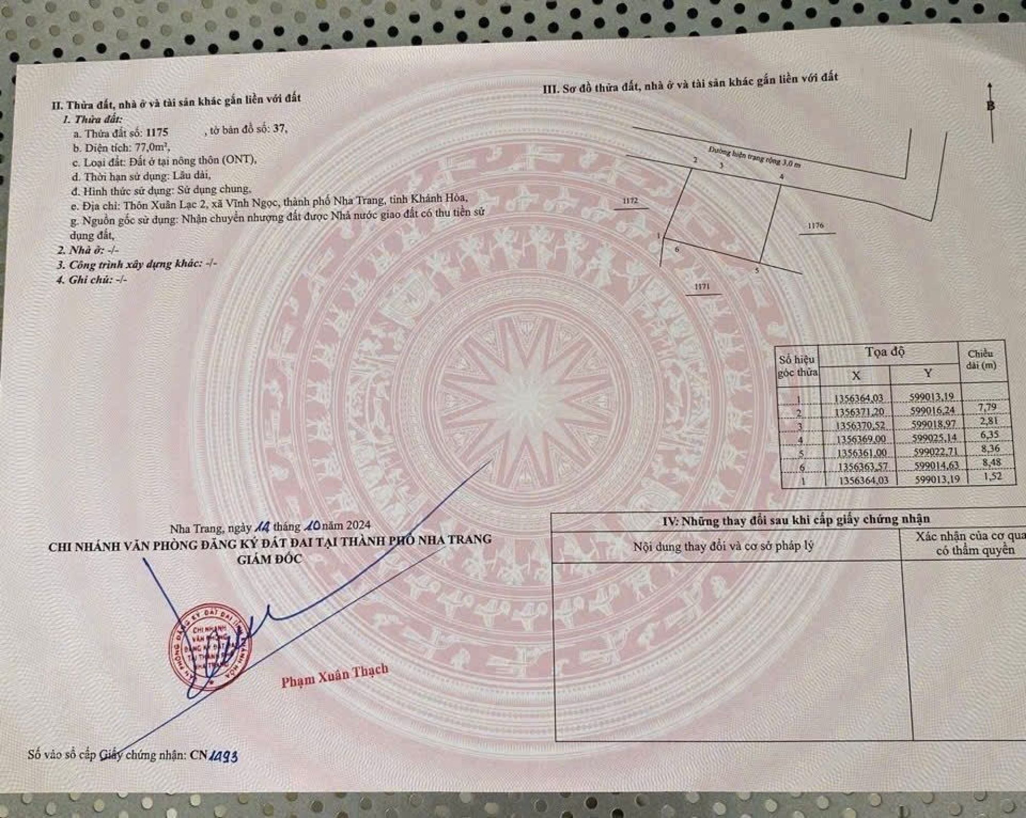 🍭 Mô Tả : Lô đất nằm cách trạm y tế Vĩnh Ngọc 50m, cách đường Cầu Dứa - Phú Nông khoảng 50m có sổ vuông vắn mặt tiền lớn xây nhà bao xịn đẹp, pháp lý an toàn nằm ngay khu đông dân cư cực kì an ninh, mất 1p xe ra siêu thị Go. Xe oto vô tận nơi