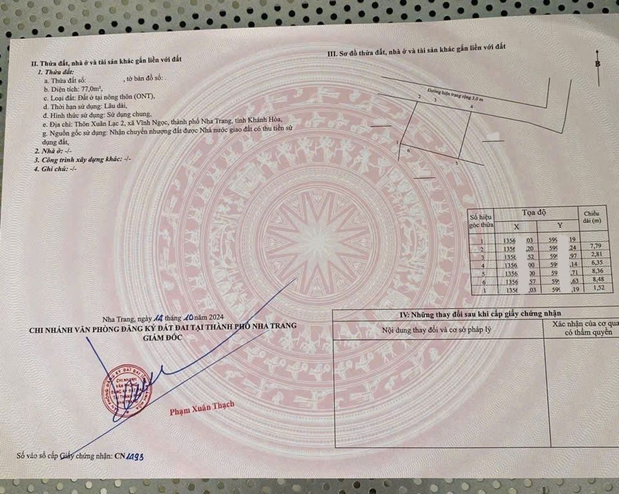 - Lô đất nằm cách trạm y tế Vĩnh Ngọc 50m, cách đường Cầu Dứa - Phú Nông khoảng 50m có sổ vuông vắn mặt tiền lớn xây nhà bao xịn đẹp, pháp lý an toàn nằm ngay khu đông dân cư cực kì an ninh, mất 1p xe ra siêu thị Go. Xe ô tô vô tận nơi