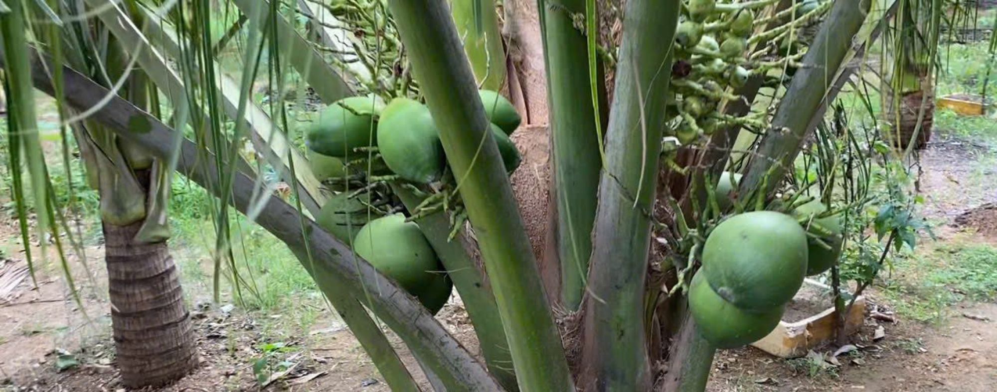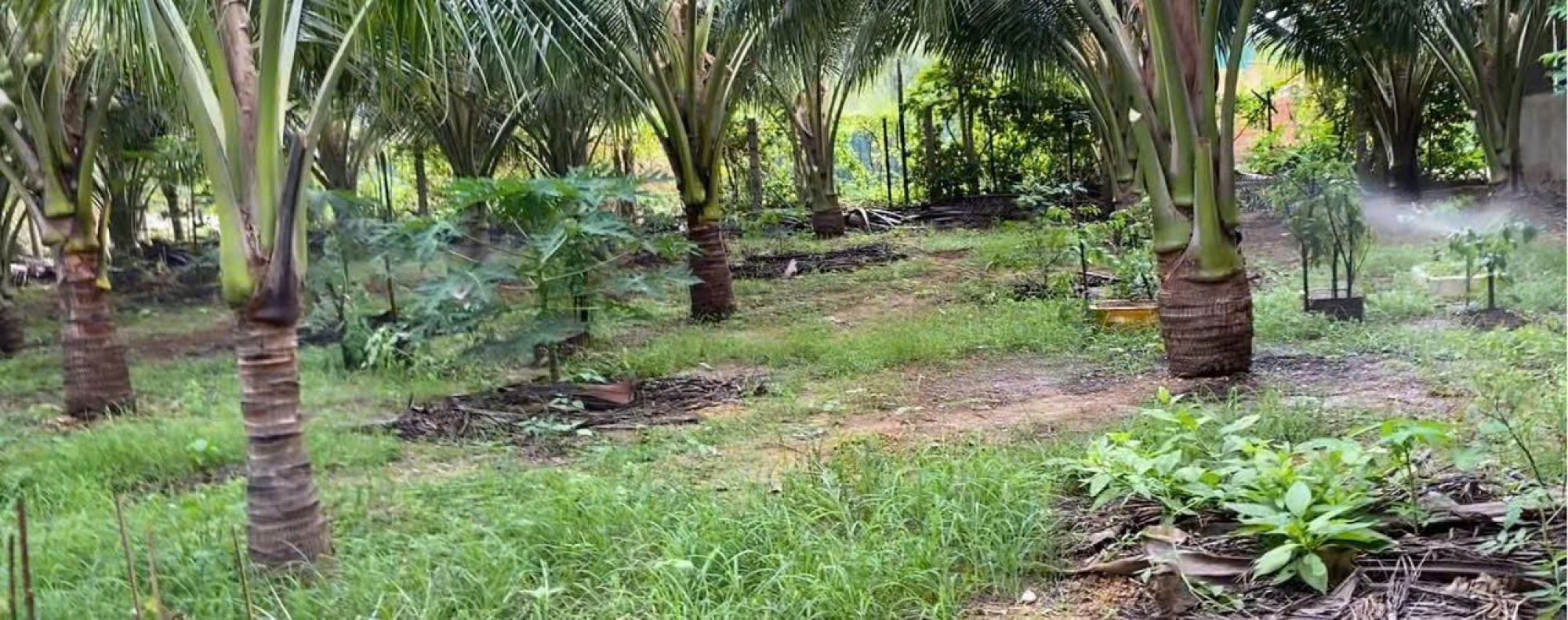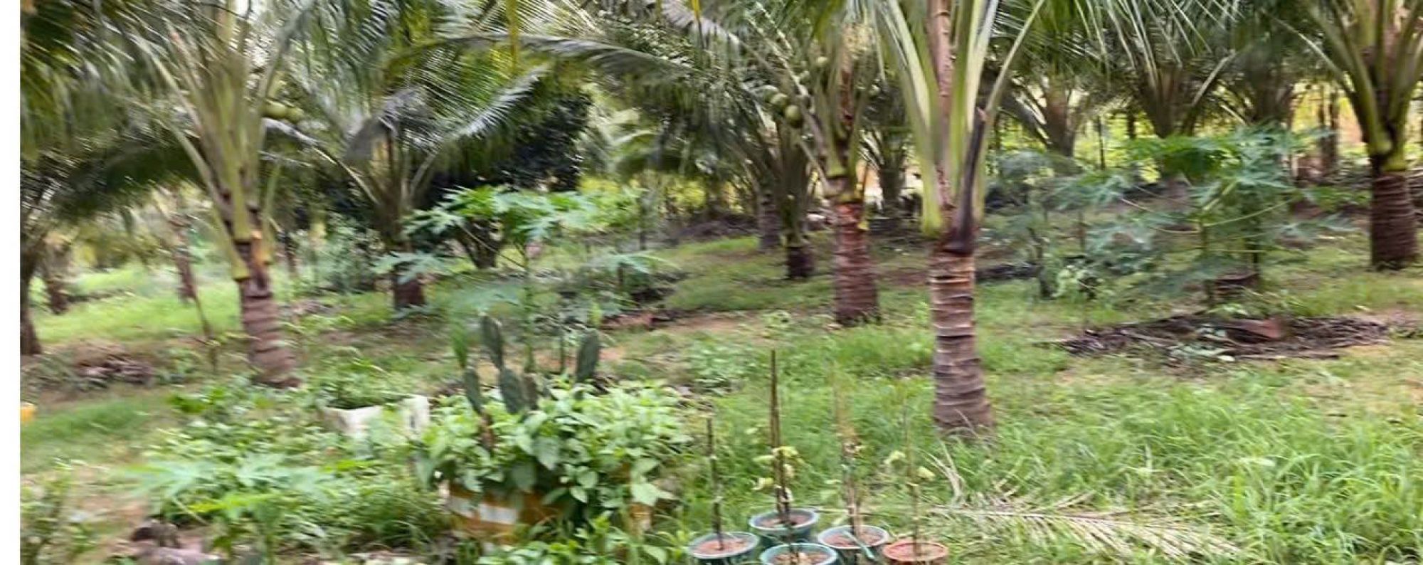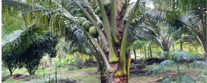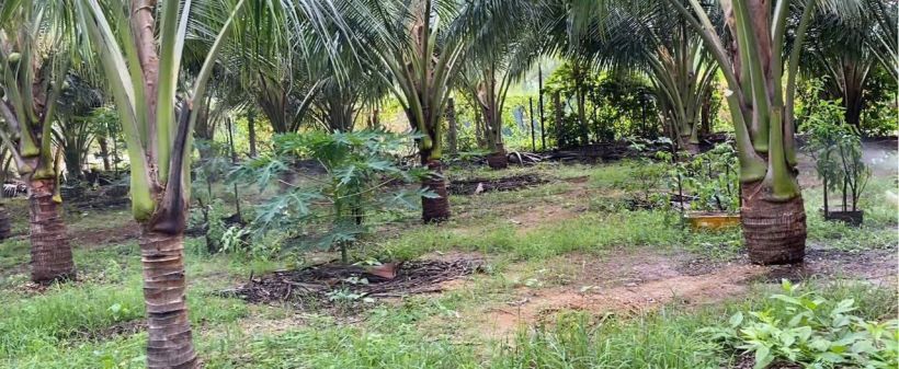 Trên đất có 150 cây dừa siêm, 20 cây mít inđo đang ra quả tơ.