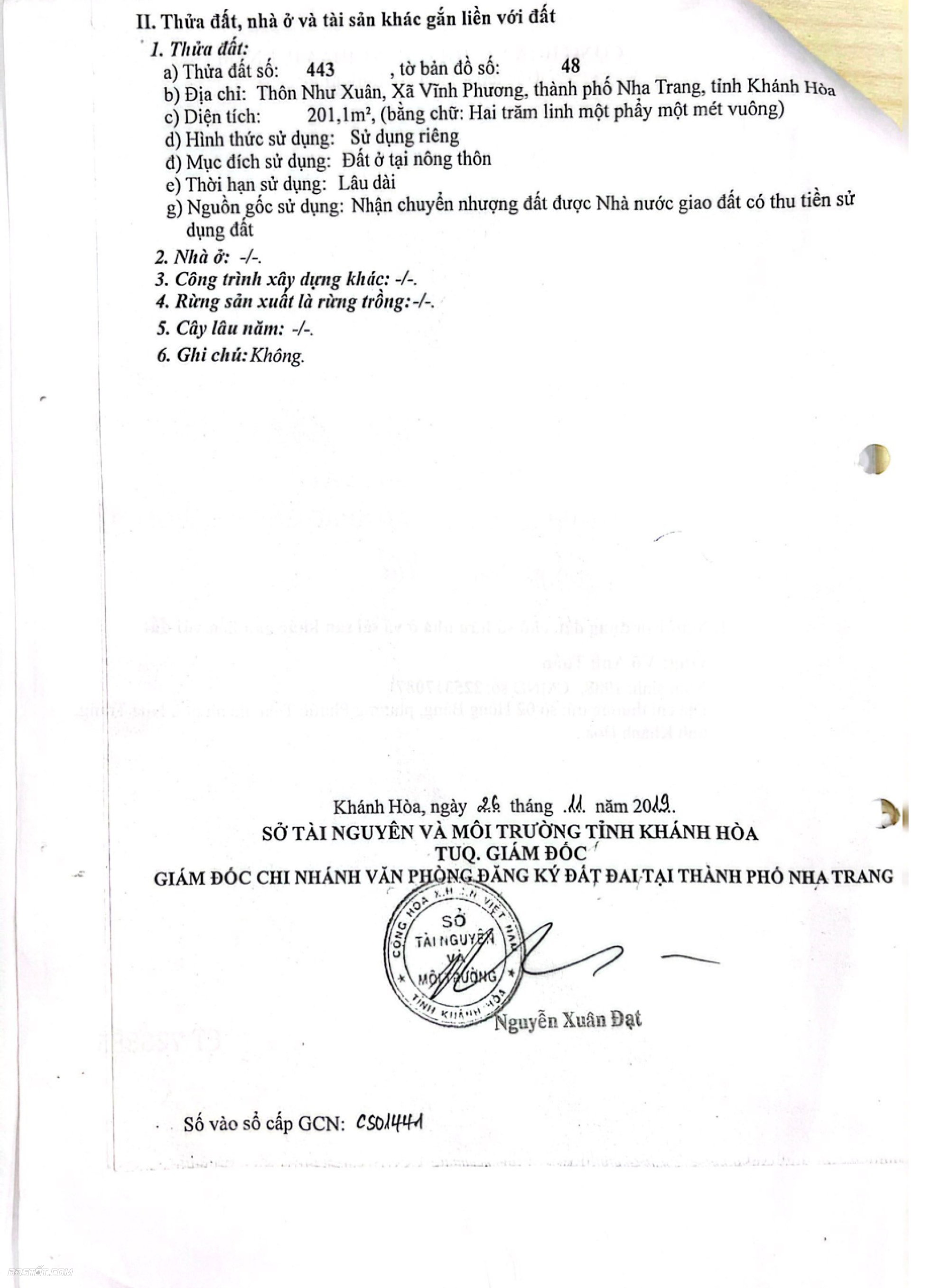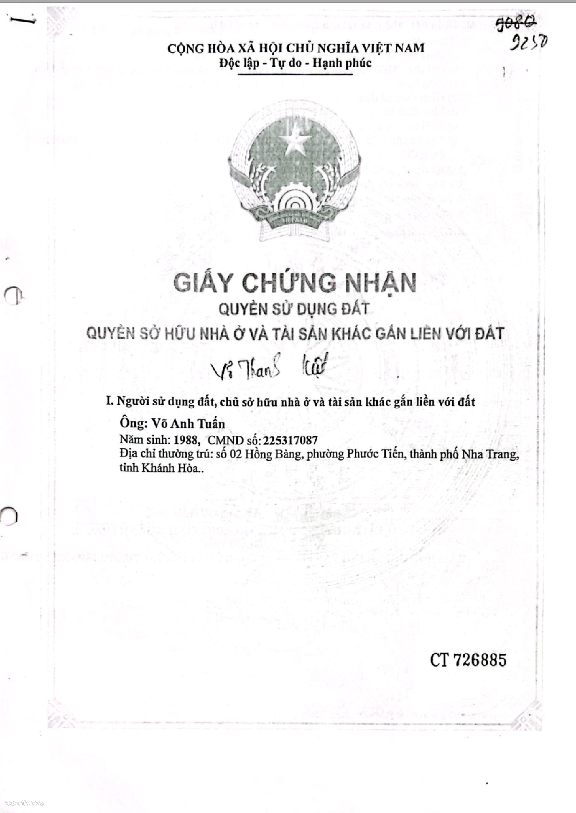 Chính chủ cần bán lô đất Thôn Như Xuân -Phường Bắc Nha Trang ( Vĩnh Phương cũ )