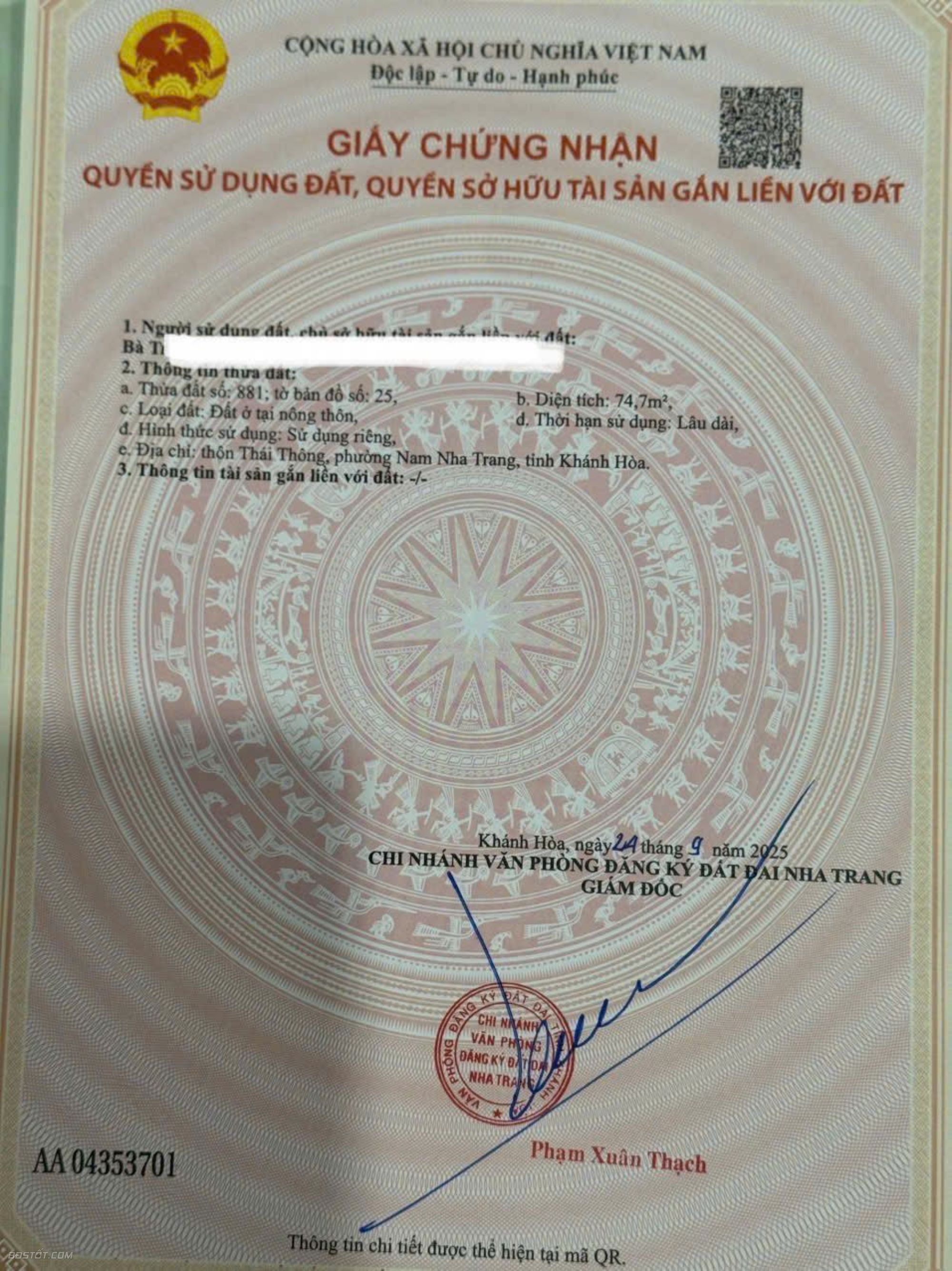 - Diện tích: 74,7m ngang hơn 7m