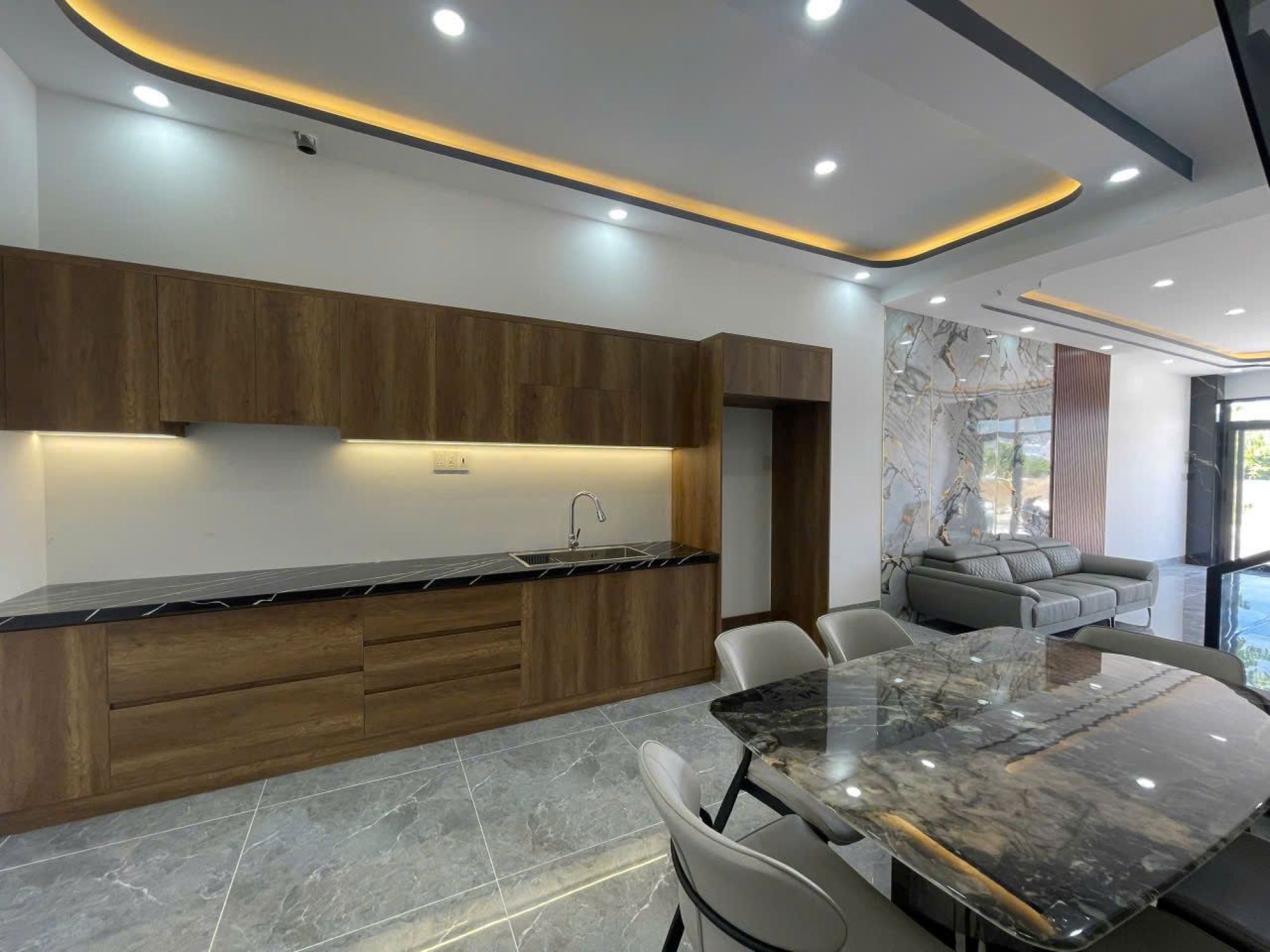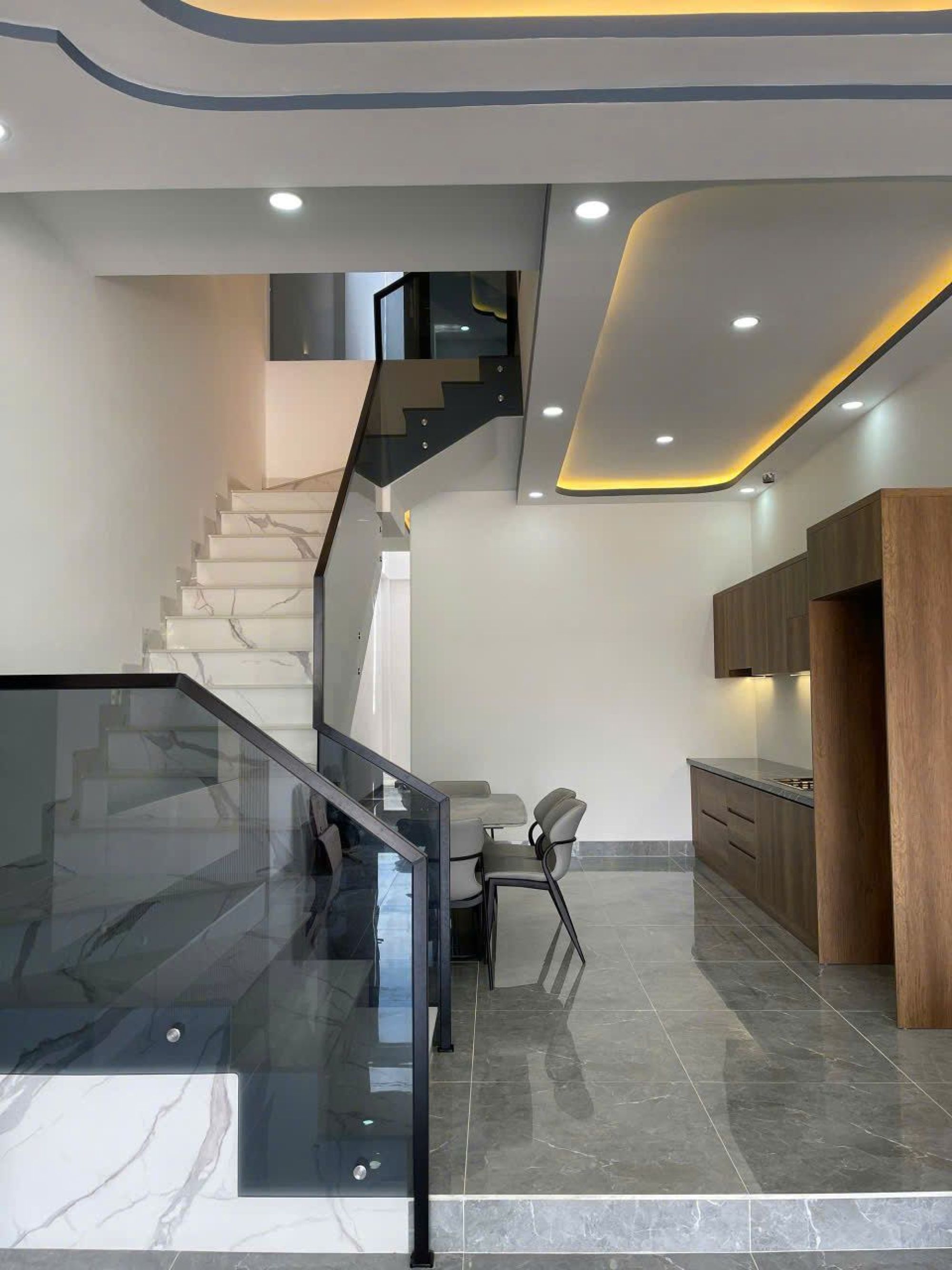 1 gara, phòng khách, bếp, sân sau