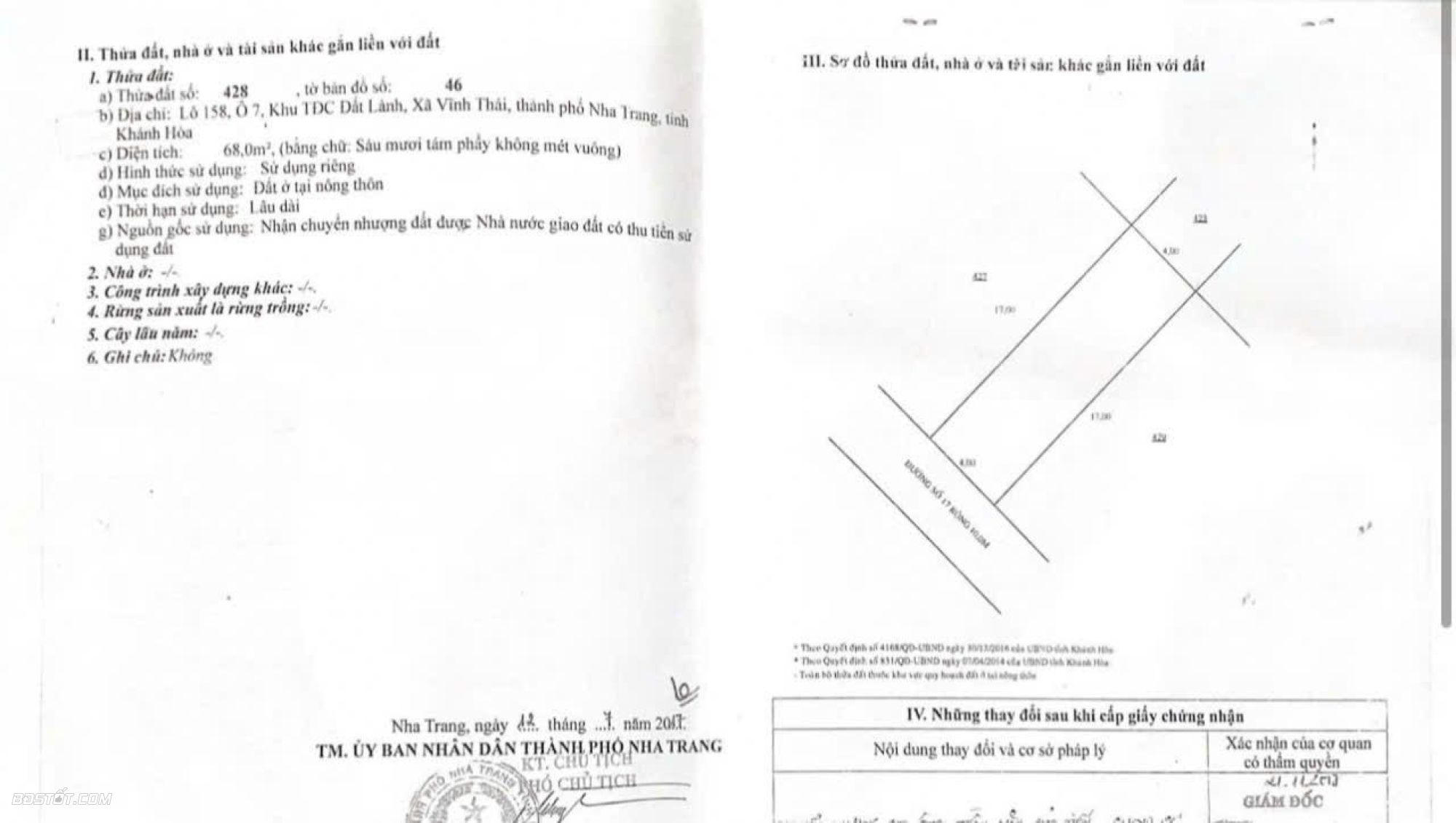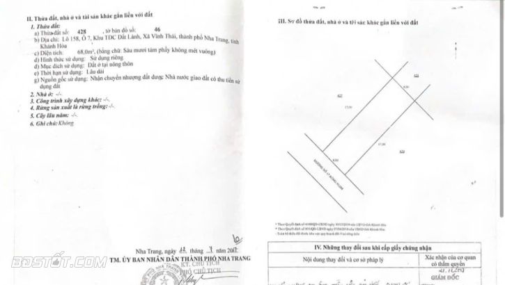 -Diện tích : 68m2 ngang 4m dài 17m , hướng Tây Nam