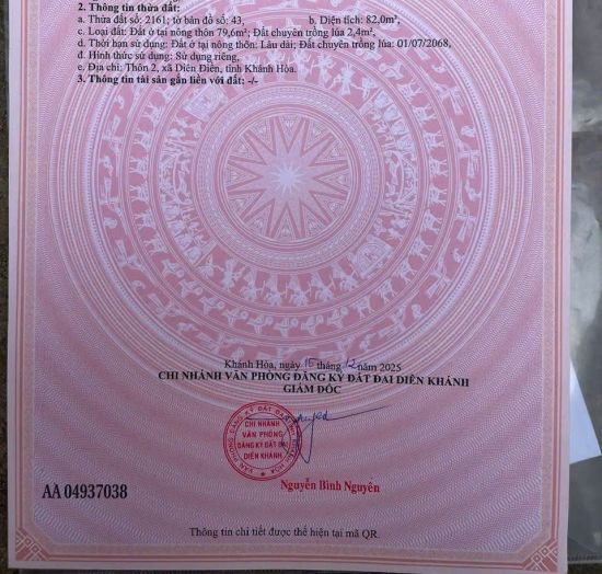 Đất Diên phú Gần  hl45...Sát Đường Miên Hoa bán kính chỉ 30m Dt 82m2 (thực tế 72m) - có 79m thổ cueĐường 3m5 .. gần hl45 .khu dân cư đông vị trí cực đẹpCách Nha Trang 6kmGiá bán: 699tr ( bao...